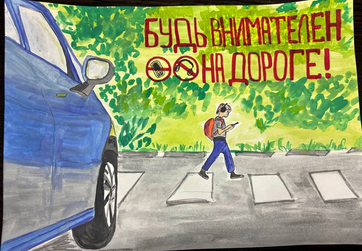 Первое место занял плакат Виктории Ануфриевой, клуб "Очаг", педагог С.В. Кудрявцева. Ее работа убедительно показала, насколько важна осторожность при переходе улицы.