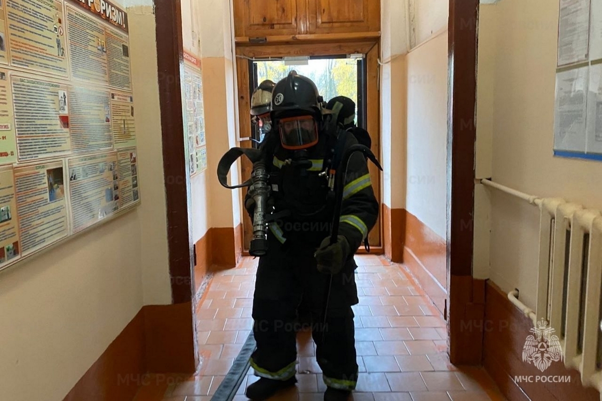 Первое прибывшее пожарное подразделение произвело разведку всех помещений, в ходе которой огнеборцы «спасли» человека. Был организован штаб пожаротушения. Затем пожарные проложили рукавную линию к очагу «возгорания» и оперативно ликвидировали условный пожар, а дети вернулись в учебные классы.