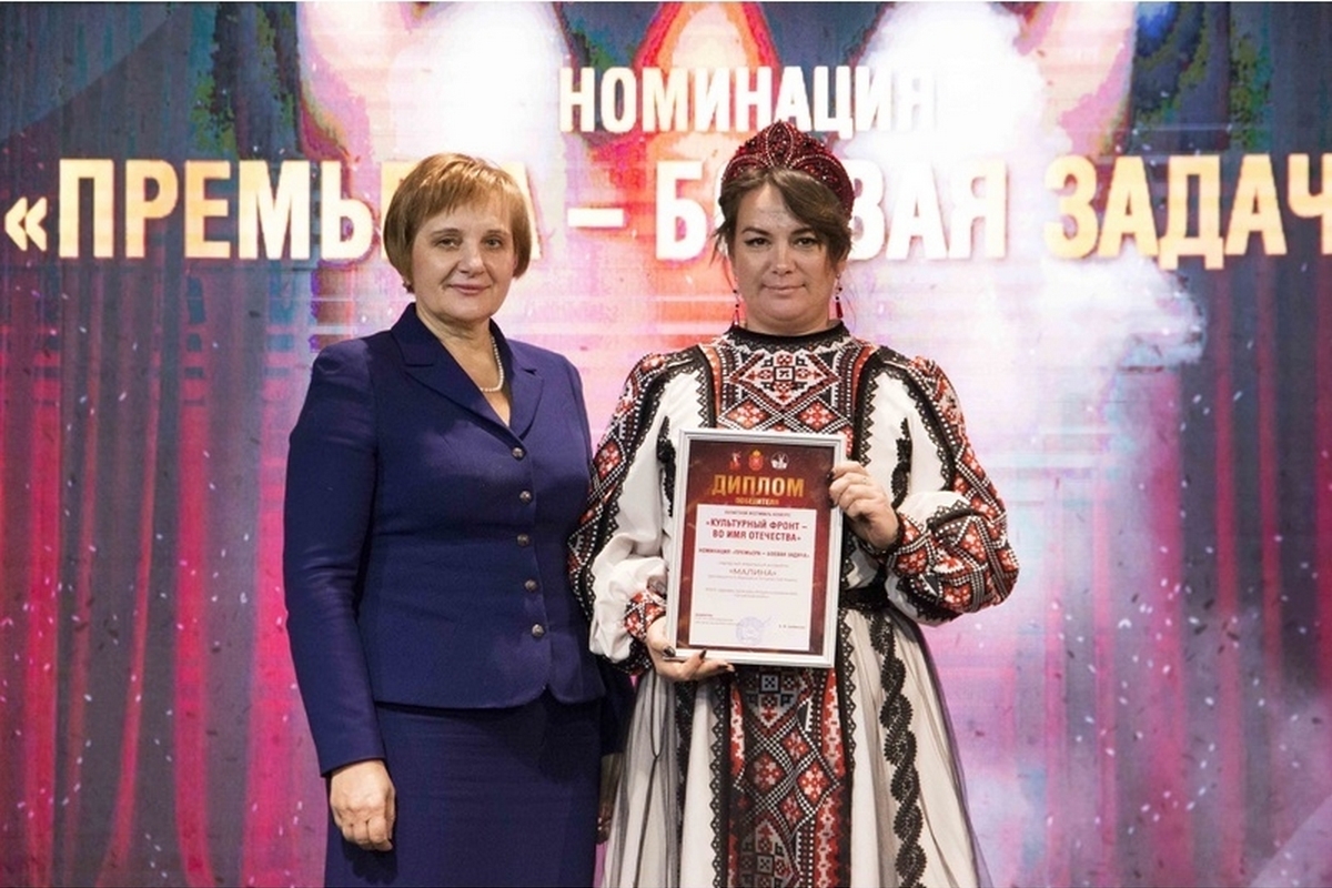 - номинации «Премьера – боевая задача» награда за глубокое художественное осмысление и яркое воплощение тем патриотизма вручена народному вокальному ансамблю «Малина» (руководитель Татьяна Бурыкина) Дворца культуры Машиностроителей.